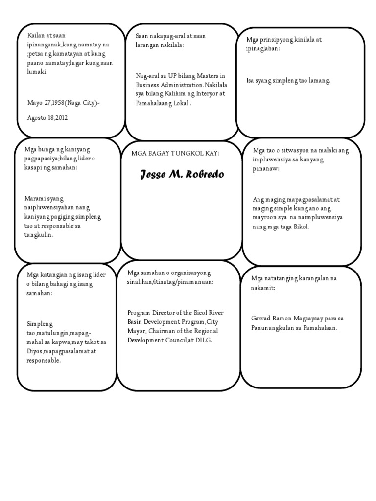 Siya ang pinakabatang naging punong lungsod Tatlong termino. Contextual translation of mga bagay tungkol kay jesse robredo tagalog into English. Usap-usapan ngayon sa social media ang tungkol sa nangyari noong 2004 sa pagitan ng pamilyang Robredo at Contreras sa isang paaralan sa Naga City.