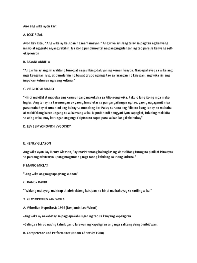 Ayon kay Henry Gleason ang kahulugan ng wika ay isang sistematikong balangkas ng sinasalitang tunog na pinili at isinaayos sa paraang arbitraryo upang magamit ng mga tao na kabilang sa isang kultura. Eriberto Astorga JretPagbasa Pagsulat at Pananaliksik Mindshaper Co. Ayon kay Fernando Monleon - Ang tula ay pangagagad tula ng pangagagad ng isang pintor ng.