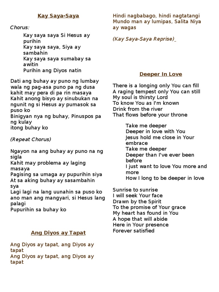 Sa pagpupuri sa ngalan mo. Saya Ng Buhay lyrics. KAY SAYA SAYA by MALAYANG PILIPINO.